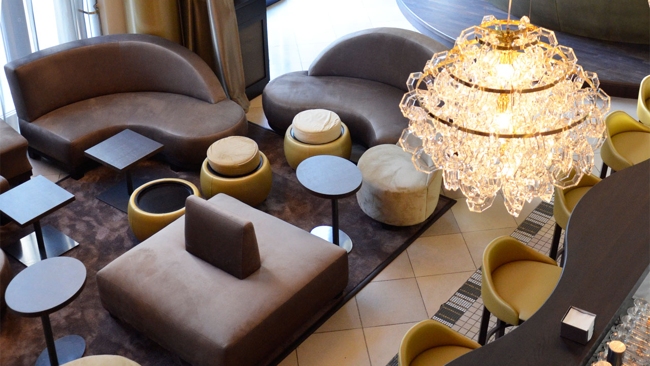 Das Lenbach Palais gehört zu einem der prunkvollsten Gebäude Münchens. 2013 wurde der Bar- und Restaurantbereich des Palais, nach einer kurzen Planungs- und Umbauphase von nur 5 Monaten, neu gestaltet. Das Redesign des neuen Rilano No.6 unterstreicht mit einem geschickten Lichtkonzept die herrschaftliche Architektur. Das geschwungene Mobiliar erzeugt in dem großzügigen Raum eine dynamische Spannung, die durch die Farbgebung und das Licht zugleich beruhigend wirkt. Golden glänzende Oberflächen, Spiegel und verspielte Lüster unterstreichen den gehobenen Charakter des Interieurs.